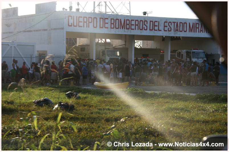 Fue para nosotros increíble ver tanta cantidad de agua en la ciudad, dimos vueltas localizando gente necesitada y fuimos repartiendo insumos, el inconveniente principal apareció cuando detuvimos el vehiculo y comenzamos a repartir los insumos. Nos encontramos en una situación muy tensa, la gente se desespera, hay mucho alcohol involucrado (ron y aguardiente es a lo que huele la gente) y parecen haber perdido el sentido de la humildad y todos desesperados luchan por obtener los insumos. La odisea duro mas de 30 min y unos guardias nos ayudaron a despachar la comida (gracias a ellos la gente se calmó porque se estaba poniendo tensa la cosa), entregamos hasta el ultimo envase de agua dejándonos sedientos y sumamente agotados por la tensión en el ambiente.